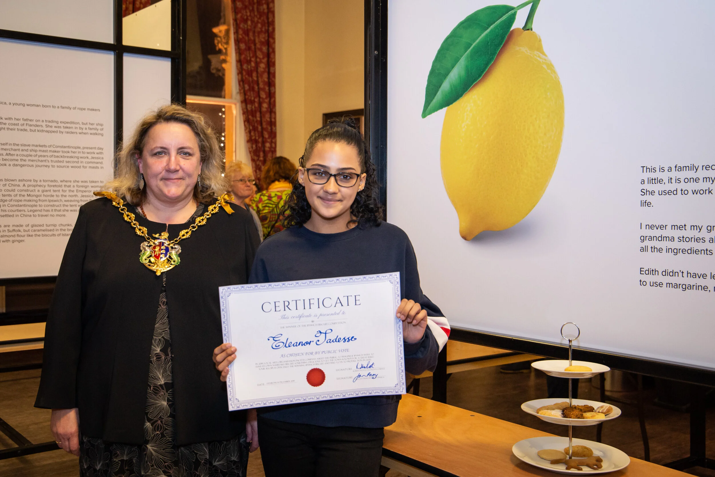 Later that day the Gala was officially opened by a 4 year old called Cairo. Following this we had live music from local singer Cherise Phillips, biscuit related games and activities, biscuit bingo, a talk on the heritage of biscuits from Professor Martin Jones and a world record attempt at biscuit eating. The Ipswich Biscuit winner was announced by the Mayor of Ipswich, Jan Parry and was a lemon biscuit, lovingly baked and adapted through the generations by 15 year old Eleanor Taddesse.